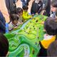 かも博とは、6年生が1年生に遊びや学習などを教えながら、校内をめぐるイベントです。体育館や教室、校庭とさまざまなブースが用意されていました。6年生と1年生でペアになって、笑顔でブースを巡っていました。
